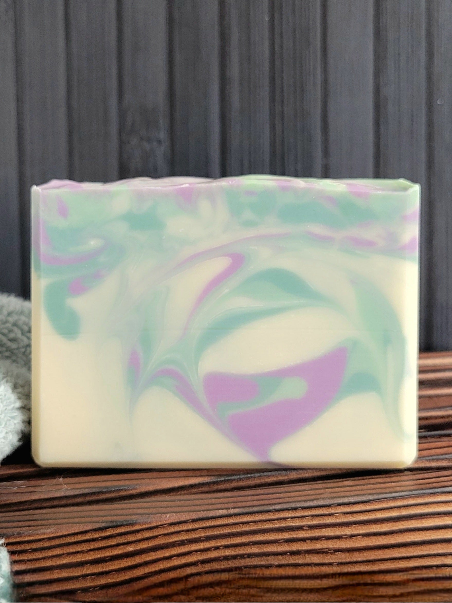 Ingredients: Olive Oil, Distilled Water, Babassu Oil, Coconut Oil, Sodium Hydroxide, Cocoa Butter, Castor Oil, Shea Butter, Fragrance, Kokum Butter, Colloidal Oatmeal, Sodium Lactate, Kaolin Clay, Vitamin E, Mica