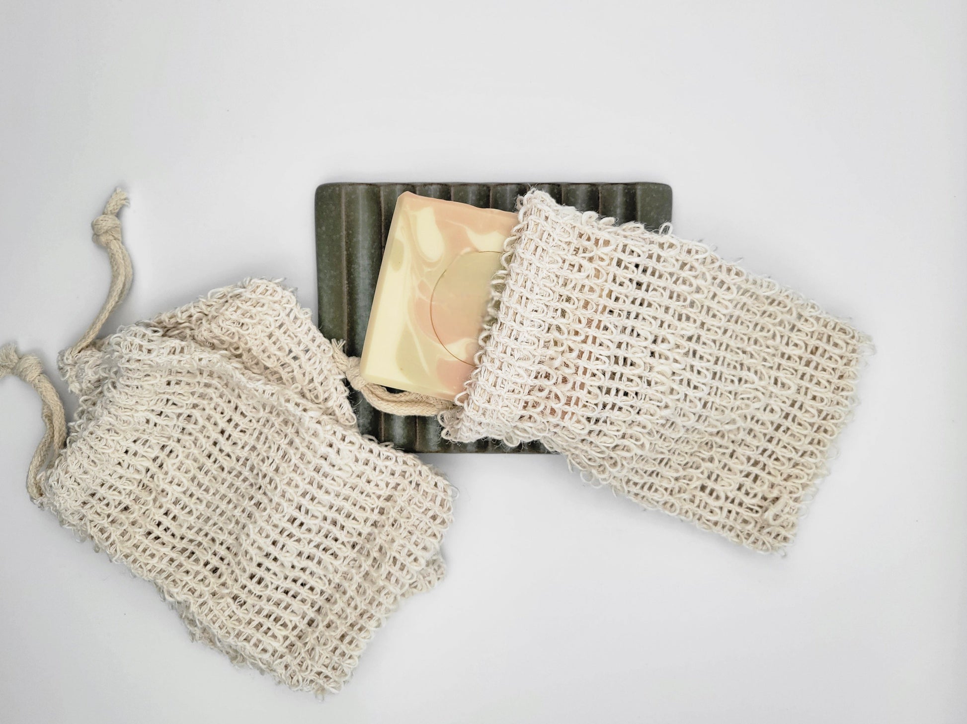 Eco-friendly and practical, this little bag extends the life of your soap while providing gentle exfoliation. They are made from a breathable cotton-linen blend, complete with a drawstring to keep your soap safely enclosed. Perfect for storing full bars or soap slivers.