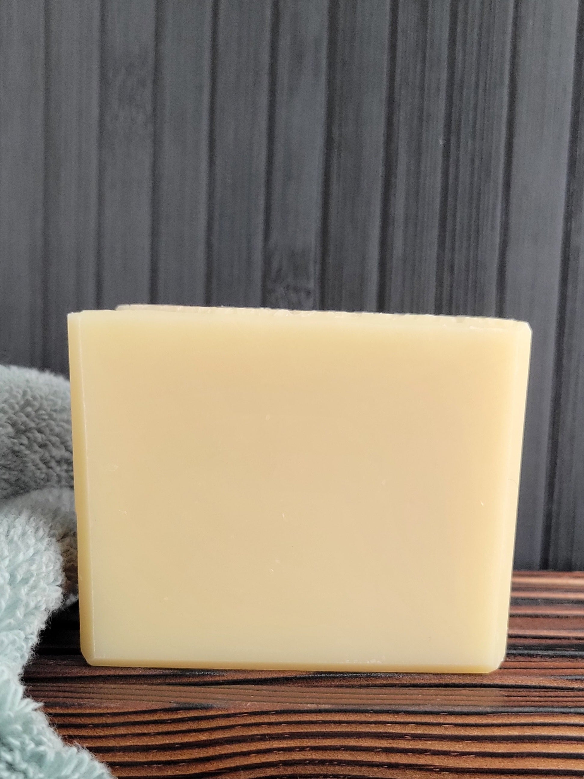 Ingredients: Olive Oil, Distilled Water, Babassu Oil, Coconut Oil, Sodium Hydroxide, Cocoa Butter, Castor Oil, Shea Butter, Fragrance, Kokum Butter, Colloidal Oatmeal, Sodium Lactate, Kaolin Clay, Tocopherol, Frankincense Oil, Orange 10x Oil, Ylang Ylang III Oil, Lavender 40/42 Oil